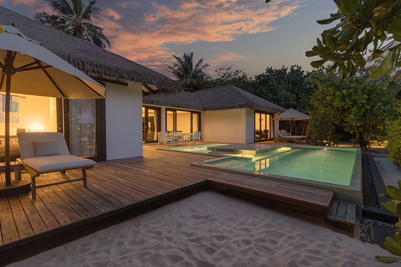 К услугам гостей 50 пляжных и надводных вилл – многие с частными бассейнами - в окружении тропической зелени, мягкого словно пудра песка и бирюзовых лагун. Каждая вилла сочетает в себе ультрасовременный комфорт с натуральными островными материалами, создавая уединение и отражая суть безмятежного образа жизни, известного как «роскошь босиком».